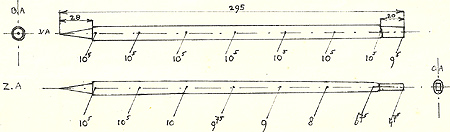 Op de tekening, die ik direct na het vinden van de pijlen gemaakt heb, kunt u zien dat de schacht aan één kant conisch