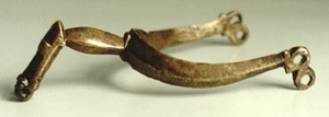 Een paar randen die uit put 2 kwamen. 11e-12e eeuw.Het bewerkt stuk hout van 33 cm |