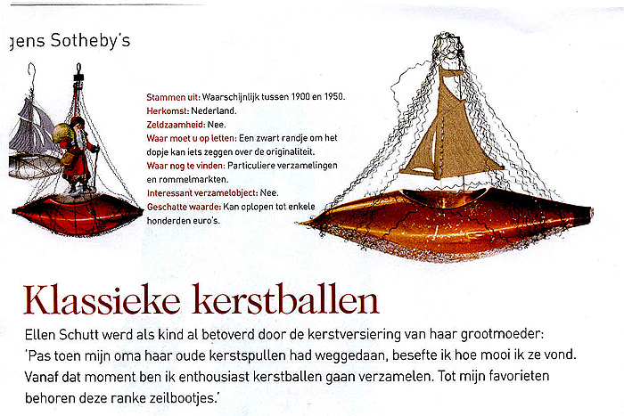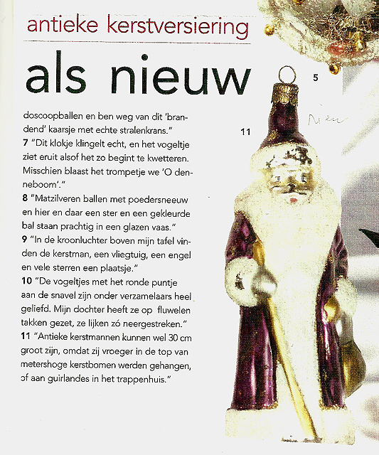 Ik ontving van een paar verzamelaars wat artikelen uit de bladen Nouveau en Elegance van december 2005. In Nouveau liet de kerstversieringverzamelaarster Helga Hofman schrijven dat zij