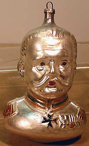 Via internet heb ik de persoon die op de kerstbal staat opgezocht, omdat hij de Franse vlag op zijn borst heeft kwam ik (volgens mij) uit bij opperbevelhebber Joffre uit het