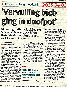 Dat het er heftig aan toe is gegaan in de gemeenteraad snapt u denk ik wel. Een probleem dat zich 30 jaar geleden voor deed daar kun je niet een huidige Wethouder verantwoordelijk voor houden. Wel ambtenaren van de afdeling Openbare Werken uit die tijd. Misschien was het wel verstandig geweest als de Wethouder mij had gebeld met de vraag hoe de kwestie eigenlijk was verlopen zodat hij adequaat zou kunnen reageren op vragen uit de gemeenteraad. Blijkbaar zitten dat soort mensen zo niet in elkaar want ik heb van hem niets vernomen. Opnieuw voor mij een bevestiging dat vele gevestigden zich in alle bochten wringen om zo hun baan te behouden en anderen in te dekken. Daarom heb ik weinig met die figuren op. Vooral omdat de Wethouder het geen doofpotaffaire noemde en zelfs een antwoord gaf “dat de olietanks tijdens het verwijderen lek waren gestoken”! Ik was erbij voordat het verwijderen plaats vond. Niemand had in de gaten dat er überhaupt tanks in de grond zaten en toen was de grond al doordrenkt met olie! Omdat ik de journalist op de hoogte had gebracht van meerdere verontreinigingen die ik bemerkt had tijdens mijn archeologische onderzoeken in Zwolle, zal hij dat doorgespeeld hebben aan de ambtenaren op de afdeling leefomgeving van de gemeente Zwolle.Ik kreeg namelijk een mail van Henk Vonk, hoofd van die afdeling, met het verzoek om eens met hun te komen praten. Natuurlijk wilden ze op die manier voorkomen dat er in de toekomst weer zoiets zou plaats vinden. Maar ik heb hem geantwoord of hij mij één reden kon noemen waarom ik de gemeente Zwolle behulpzaam zou zijn. Verder schreef ik nog: “Een gemeente die mij onheus behandeld heeft en het zelfs presteerde om in december 1984 mijn laatste werkweek, in de bouwput van de te bouwen bibliotheek, niet uit te betalen. Dit waarschijnlijk omdat ik de verontreiniging van de grond aan de kaak had gesteld”! Ik adviseerde Henk om mijn site over die onderwerpen maar eens te lezen. Een paar dagen later ontving ik van hem de opmerking “Het is jammer te vernemen van uw slechte ervaringen met de gemeente, zoals ook blijkt uit uw website. Mijn aanbod om met u te praten over uw kennis van de stad blijft echter staan. Mocht u zich bedenken of daar op een later moment toch gebruik van willen maken, kunt u mij dat altijd laten weten”.