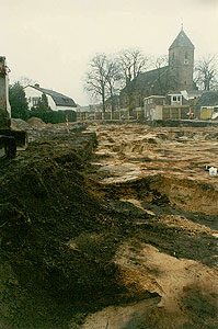 ‘s avonds bij lamplicht doorgewerkt. Archeologisch gezien bleek dat het oudste materiaal dicht tegen de Dorpsstraat aan werd gevonden. Er kan dan ook met grote