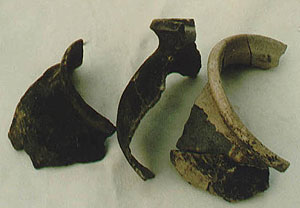 steengoed - die door dezelfde persoon werden ingebracht - zijn eveneens erg bijzonder. Ze zijn afkomstig van kannen die tussen 1320 en 1360 in Siegburg geproduceerd