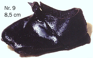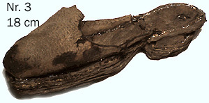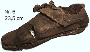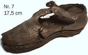 Veelal wordt schoeisel incompleet gevonden. Uit de hoeveelheid schoenmateriaal die door mij gevonden werd is een selectie gemaakt. 10 complete modellen