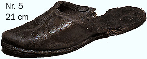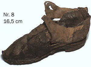 nummers 3 t/m 8 zijn gevonden in een stortlaag van ± 1580 - 1720. De nr. 3 en 5 werden vroeger, nadat de hielstukken er zijn afgehaald, als slof gebruikt. Nr. 4