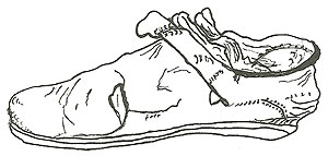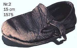 Deze kinderschoen is gevonden tijdens de opgraving in de Spoelstraat en zou gerestaureerd worden door de R.O.B.. Ook van deze geen tekening of andere