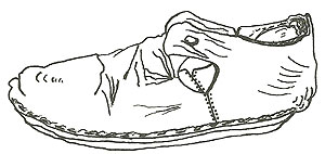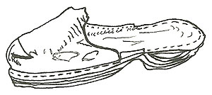 lijkt om een misvormd voetje te hebben gezeten. De aangegeven lengtematen zijn van de buitenzool.