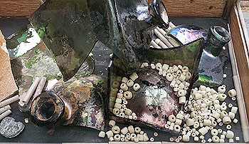 Ik heb Frans toen uitleg gegeven over de wijze hoe in de 17-18 eeuw dit soort kralen gemaakt werden. Het kwam er op neer dat de kralen waarschijnlijk wikkelkralen waren. Een later onderzoek bevestigde mijn uitleg. Van het steengoed dat door het museum als 18 e eeuw werd gedateerd, heb ik geen foto’s ontvangen