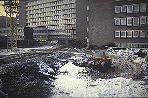 De bouwdirectie verstrekte vervolgens de onmisbare bouwplattegrond en de N.A.P.-hoogtes. Bouwcoördinator Michies stelde ons bovendien op de hoogte van vondsten in het verleden bij werkzaamheden op het ziekenhuisterrein gedaan. Van oktober 1985 tot en met januari 1986 werden door mij, met assistentie van Jaap v.d. Berg, Arie Bouwman, Joop Bredewold, Henri v. Dijk, Herman Kamphuis, Joke Appel en Gert. Oostingh in vaak barre winterse omstandigheden waarnemingen verricht. Vooral op zaterdagen en eind december rond de feestdagen, toen het grondbedrijf van de Gebr. Sonder uit Almelo doorwerkte, moesten en konden waarnemingen worden gedaan. De firma Sonder die, ondanks de tijdnood, ons bijzonder ter wille was, wordt ook op deze plaats bedankt. Vooral ook dankzij de heren Polhaar, Maatman en Heuver van de bouw, die samen met bouwcoördinator Michies zeer behulpzaam waren, kunnen de waarnemingen geslaagd worden genoemd. De laatste die dank verdient is echter de kok, Gerhard Schunselaar, uit de keuken van het ziekenhuis, die op een extreem koude dag voor warme soep zorgde, HULDE! |