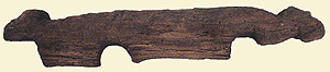 Een paar randen die uit put 2 kwamen. 11e-12e eeuw.Het bewerkt stuk hout van 33 cm |