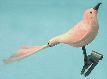 Op deze site heb ik verschillende artikelen geplaatst met daarin waarschuwingen en uitleg m.b.t. versieringen die op verkoopsites aangeboden worden als antiek en waarvoor dan behoorlijke prijzen gevraagd worden. Op een gegeven moment ben ik gestopt met dat soort artikelen want er is geen beginnen aan, zoveel shit dat er bij mij in de vragenmails binnen komt. Toch wil ik tot slot nog twee objecten kort behandelen. Het soldaat/vrouwtje kreeg ik onder ogen bij mij thuis toen een Belgische verzamelaar het niet helemaal vertrouwde. De versiering was hem verkocht door een handelaarster uit Hengelo. Zij had het als Antiek aangeboden op Marktplaats. De versiering is duidelijk een nieuw product dat niets met antiek of oud te maken heeft. Over het woordje oud kun je natuurlijk discuteren, wat is oud? Voor velen is een kerstbal al oud als die 30 jaar oud is. Maar als ik, en vele anderen, het over antiek hebben moet de versiering minimaal van voor de WOII zijn. Deze soldaat is dat duidelijk niet. De verzamelaar had er 70 euro voor betaald en ik heb hem toen gezegd dat de handelaarster waar hij die van had gekocht, toevallig een zeer goede bekende van mij is. “Vraag je geld maar terug en zeg maar dat je bij mij bent geweest en ik de versiering beoordeeld heb”. Hij is terug gegaan naar Hengelo en heeft zijn geld terug gekregen. De volgende dag werd ik gebeld door de handelaarster. Haar verweer was dat zij die versiering bij een inboedel te pakken had gekregen en dat die versiering tweedehands was en wel een leeftijd zou hebben!!! Tja, dat is wat ik bedoel met mijn teksten dat menigeen niet weet hoe je antieke versiering moet herkennen. Of ze blauwe ogen heeft weet ik niet maar nogmaals “vertrouw nooit op die mooie blauwe ogen.”